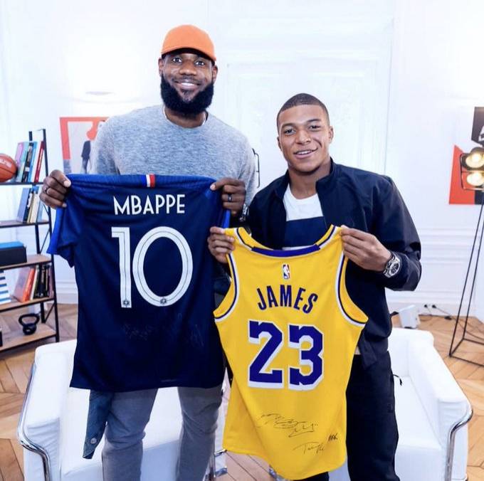 姆巴佩出生于1998年,比詹姆斯足足小了15岁,但这不妨碍二人成为忘年交。在社交媒体上,两人有过多次的互动,詹姆斯曾于去年巴黎行期间与姆巴佩、内马尔会面,“詹皇”将姆巴佩称为“天选之子”,姆巴佩则回应“谢谢国王的建议”。